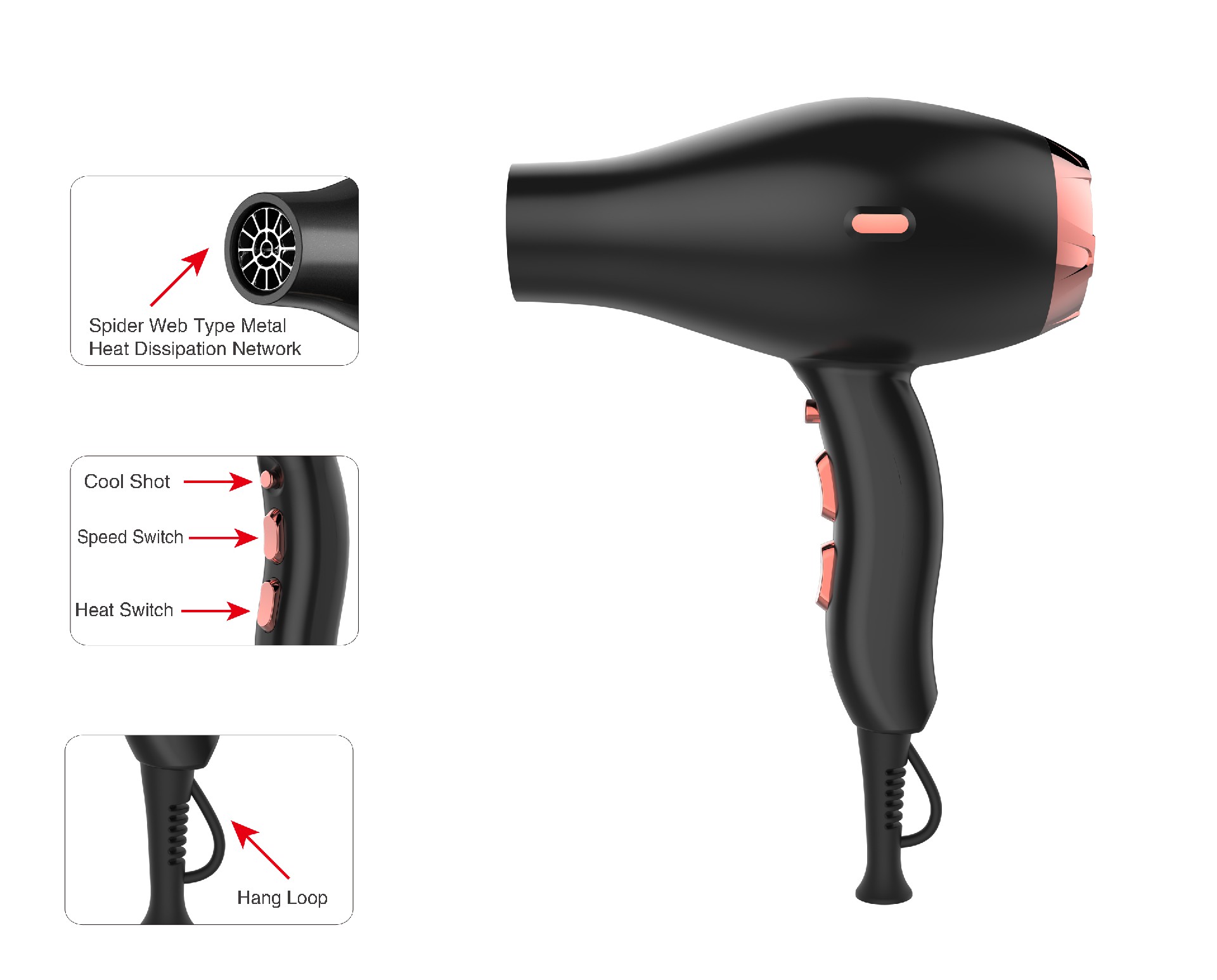 檔位設(shè)置:2 檔風(fēng)速/3 檔溫度,一鍵冷風(fēng)