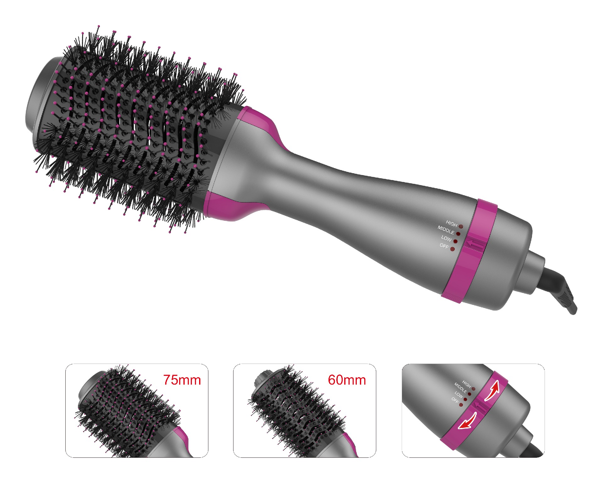 LED旋轉旋鈕控溫,3檔溫度/風速可選